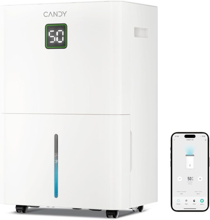 Candy Dehumidifier is suitable for spaces up to 5,500 square feet. Being capable of removing up to 84 pints of moisture per day at 86°F and 80%RH condition(Max 98 Pints/day at 95°F, 90% RH), adjusting humidity levels from 30% to 80%. This dehumidifier is ideal for homes, basements, offices, bathrooms, bedrooms, kitchens, storage rooms, living rooms, laundry rooms, cellars, crawl spaces, and large areas.